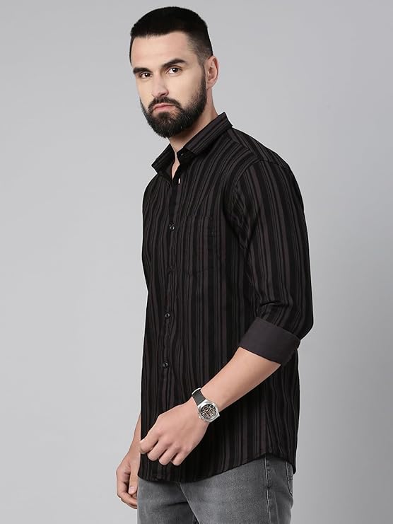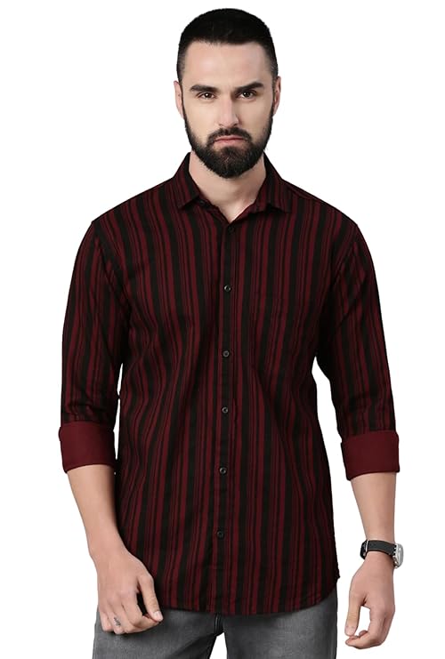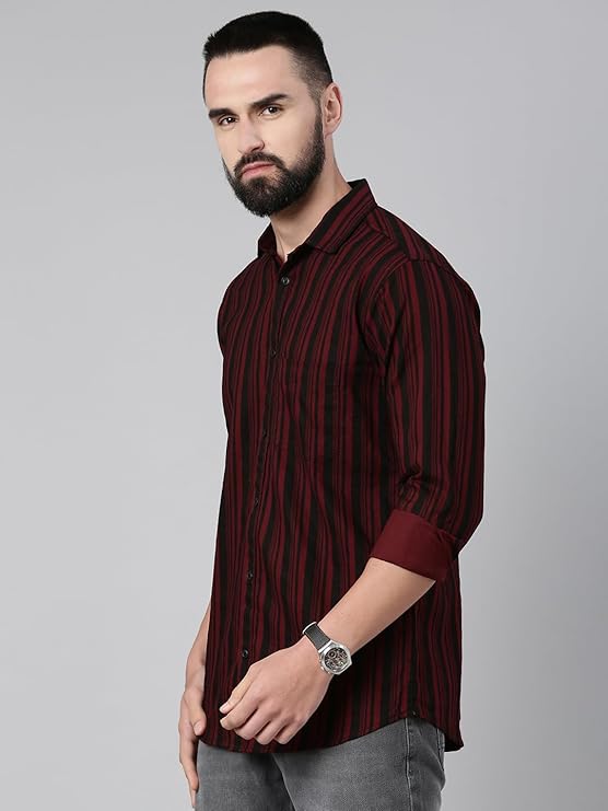 Majestic Man Men’s Standard Slim Fit Striped Pure Cotton Casual Shirt In Stock